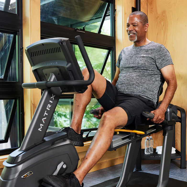 Recumbent bikes are more well known for placing less stress on the joints. The reclined body position is easier on the low back (lumbar spine), making it a great option for individuals with lower back injuries. It's also beneficial for people with cardiac limitations. If you struggle with balance you may find that a recumbent bike is safer to use because there is less of a risk of falling off than when using an upright bike or other standing cardio equipment (such as a treadmill or stair climber). There's little to no risk when riding a recumbent bike, so if you are shopping for an elderly person looking to improve their health, this is a great workout option.
