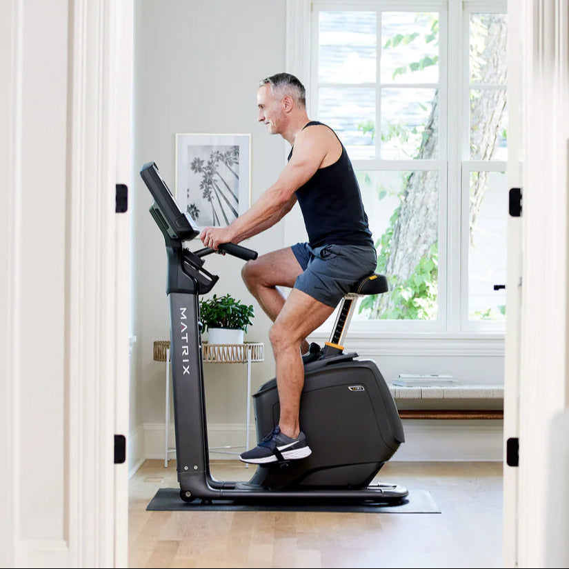 Upright bikes will have more involved consoles with built in programs. Unlike the quick adjustment of resistance on other stationary bikes like spin bikes, upright bikes will have buttons on the console or on the side handles to adjust resistance. Some upright bikes also have heart rate compatibility and can track your workouts. Consoles may be LCD display or touch screen if more advanced. The most common display type is an LCD display. If preset programs are important to you, then an upright bike is a great option for you. Some exercise bikes we carry, such as Matrix Fitness allows you to choose between different types of consoles including LCD display, LED and touch screen.