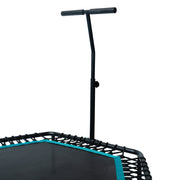 The FitWay Fitness Trampoline is a versatile exercise tool built for safe and effective workouts. Featuring a durable steel frame, a soft jumping mat, and a stabilizing T handlebar, it supports a range of exercises that promote increased bone density, muscle strength, and weight loss. Its wide bouncing platform and low-to-the-ground design ensure stability and safety, making it ideal for fitness enthusiasts of all levels.