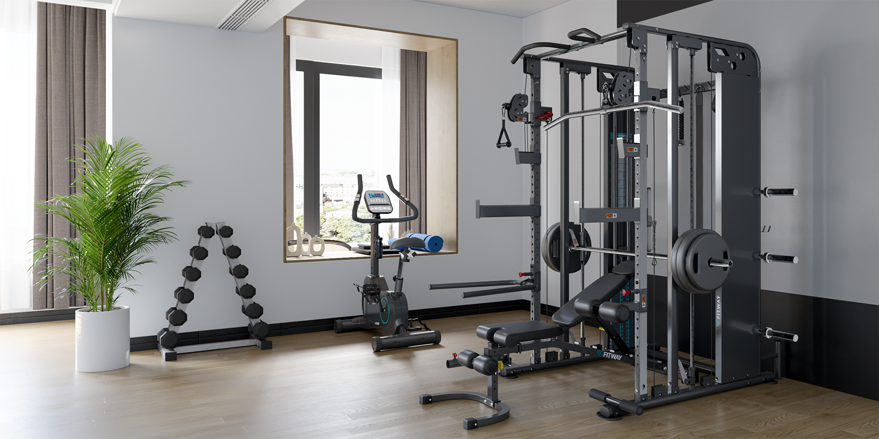 Additionally some premium functional trainers such as the Inspire FT2 or the FitWay FTS+ include a smith machine which allows you to combine the benefits of a functional trainer with those of traditional training methods without sacrificing space with the addition of a separate power cage / half cage.