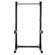 Check out our FitWay Half Rack w/ Spotter Arms. Half Racks are great space savers providing a smaller footprint than most enclosed power racks.