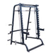 The Series 7 Smith Machine. Set to a 7-degree reversed pitch, the Series 7 allows natural upper and lower body movements for maximum muscle interaction; a feature not found in the traditional Smith Machine. User safety is provided by 20 cross-member lock-out points that are accessible with a simple 15-degree rotation of the bar, eliminating the need for a spotter. For those exercises that demand freeweight movement, the 14-position gunrack with 17" extra heavy-duty safeties is also set to a 7-degree reversed pitch providing convenient lift-off points and predictable racking.
