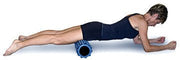 The RumbleRoller's massaging action can be further intensified by changing your movement from a back-and-forth rolling motion to a side-to-side rocking motion. That's because the RumbleRoller's bumps have an asymmetrical shape that allows them to flex more easily in one direction. During rolling movements (i.e. the most common roller exercises, with the roller moving beneath you), the bumps flex relatively easily, and provide a wiping-type massage pressure. However, if you rock from side-to-side toward the RumbleRoller's ends, the bumps are forced to flex in a direction in which they're designed to be somewhat stiffer. This creates a deeper "digging" pressure.