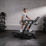 The Centr x HYROX Perform Treadmill is a motorless running machine made for athletes and engineered for next-level performance. Its curved design encourages proper form, while the cushioned, shock-absorbing surface maximizes endurance and stamina so you can conquer your runs and master your agility.