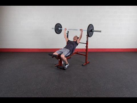 The Olympic Folding Bench from Best Fitness provides a great base for a variety of dumbbell & barbell exercises. The sturdy design accommodates both 6' & 7' lifting bars as well as users of varying heights with multiple adjustment points. When you are finished with your workout simply collapse the bench and store away opening up more usable space for your other exercises!