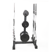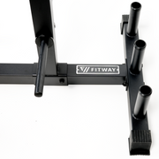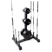 The Fitway Plate and Bar Rack is a durable and efficient storage solution designed for any gym. With heavy-gauge welded steel construction and six weight plate storage posts, this rack keeps your workout space organized and clutter-free. The rubber foot tabs protect your floor while providing stability, making it a reliable choice for both home and commercial use.