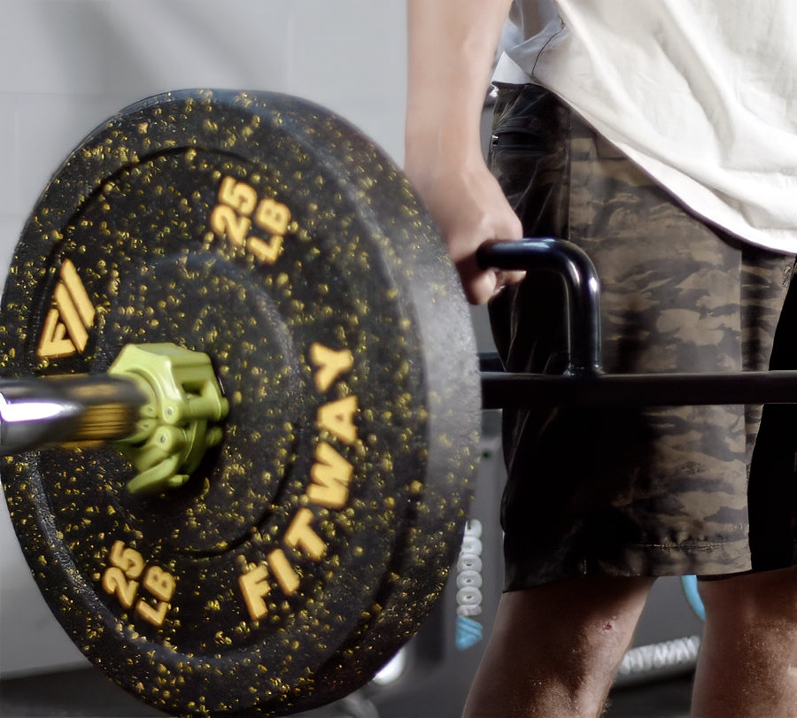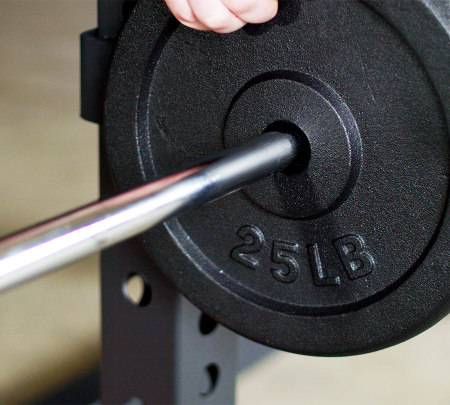When beginning your workout with weight plates and a barbell, it's important to consider the weight of your barbell. A standard Olympic barbell will be 7 feet long and 45lbs. Fitness Experience also carries 6 foot and 5 foot bars, which go down in weight respectively. Lastly, for someone that is just starting out we have aluminum training bars, which are around 15-20lbs to start.