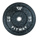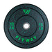 Hi Temp bumper plates feature recycled vulcanized rubber plates adhered to stainless steel inserts. While they fit a standard-sized barbell, they are bouncier and less noisy than big old steel plates.